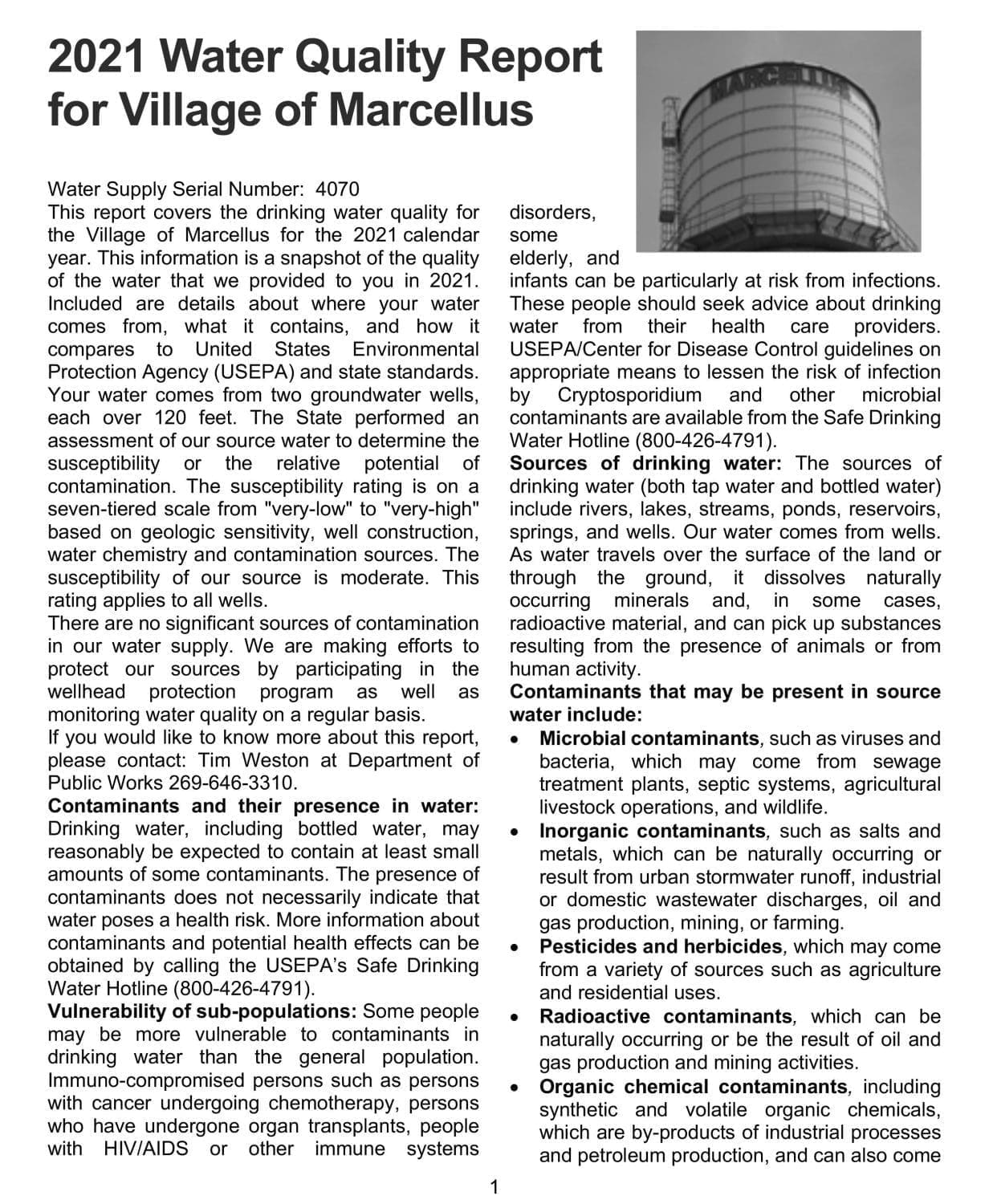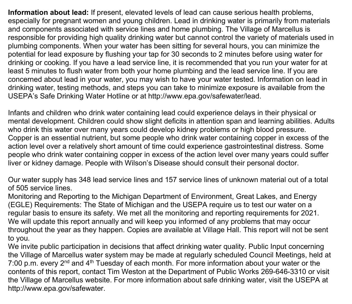 2021 Consumer Confidence Report Notice – Village of Marcellus June 7, 2022 By Marcellus News Leave a Comment