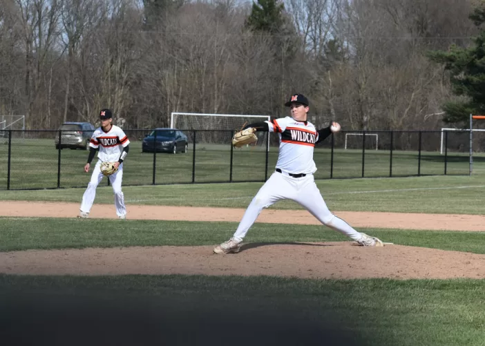 Southpaw Jakob Huber struck out 13 batters in the ‘Cats 10-0 win in the first game of a doubleheader, April 14. On third is Austin Carlson.    -News Photo MHS Varsity Baseball – April 14, 2025The MHS varsity baseball team opened at … [Read more...] about MHS Varsity Baseball sweeps the Chiefs in home opener