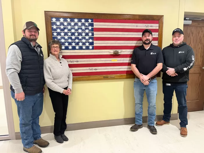 Commissioner Ryan Laylin recently awarded Jeff Copenhafer, ELITE Companies superintendent, and Jack Whitman, ELITE Companies senior project manager, with a Cass County honor coin, as thanks for the American flag art he created using … [Read more...] about Handmade gift pays tribute to Cass County Historic Courthouse