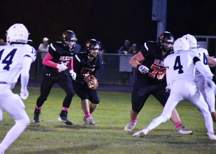 Senior Quarterback Parker Adams, center, takes one of his last snaps for the Wildcats, Friday, October 25, against Grand Rapids Sacred Heart. Adams was MHS Athlete of the Week last week for his performance against Bangor. During that … [Read more...] about ‘Cats fall to #2 Falcons – finish season with 5-3 record