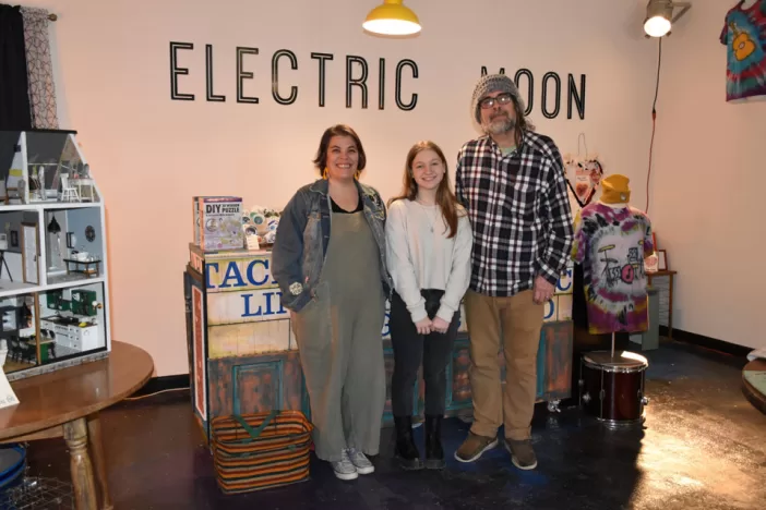 “Curated, colorful, and curious” is how Electric Moon’s Erika Watts, left, describes Electric Moon at 101 E. Main, Marcellus. With Watts are News correspondent Morgan McClain, and Erika’s husband, Joe Watts. … [Read more...] about Electric Moon: We didn’t pick Marcellus, Marcellus picked us