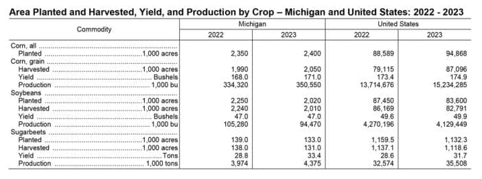 Michigan farmers expect higher yields for corn and sugarbeets in 2023, with soybean yields staying consistent with last year, according to Marlo D. Johnson, Director, USDA NASS, Great Lakes Regional Office. The November Crop Production … [Read more...] about Michigan November Crop Production