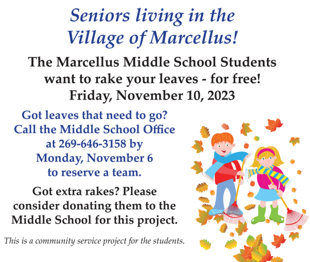 Marcellus Middle School Students want to rake your leaves, November 9!