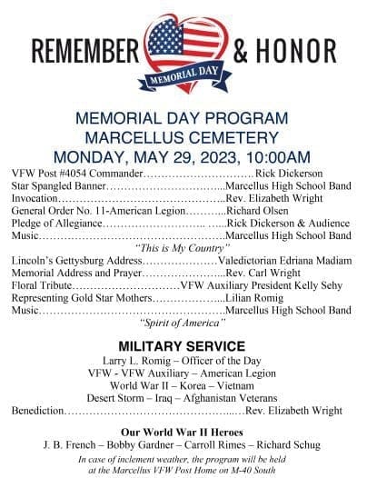 Annual Memorial Day Ceremony – Monday, May 29, 2023