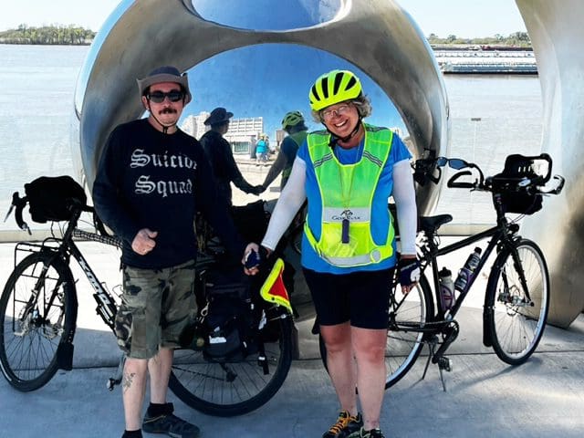 Patch & Remington’s Tony Ruacho has joined Chris Nofsinger for part of her cross country bicycle journey in support of the Marcellus Township Wood Memorial Library. Here they strike a pose at their truck stop camping site in Simmesport, … [Read more...] about Travels with Chris: P & R’s Tony Ruacho joins the journey