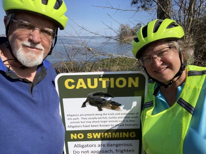 Chris Nofsinger (right) and husband David Shenk pause at the Three Rivers State Park where Florida meets the southwest corner of Georgia. Nofsinger is riding her custom made bikc from the Atlantic to the Pacific to fulfill a dream while … [Read more...] about Nofsinger’s Russell Wood Ride: Smooth Sailing . . . so far!