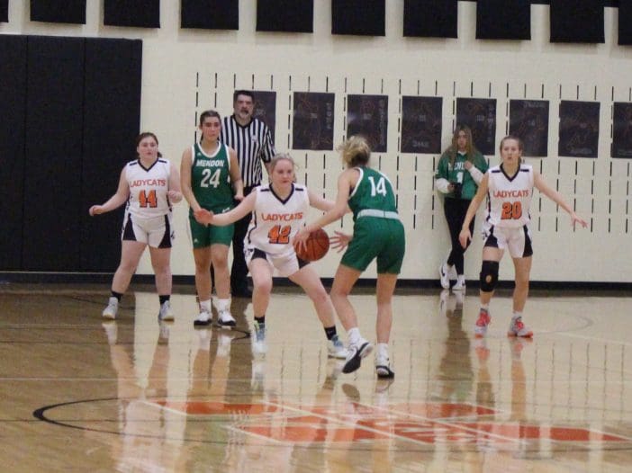 Senior Ladycat Caylee Bishop, #42, on defense against the visiting Mendon Hornets, Friday, February 17. The contest was one of three the Ladycats played during the week. The Hornets proved to be formidable foes for the Ladycats, winning the … [Read more...] about Ladycats Go 1 and 2 the week of February 13