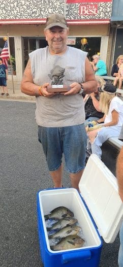 Billy Parker proudly displays his trophy as winner of the Big Bluegill and Big Stringer categories during the annual Bluegill Frolic Fishing Contest. by Thomas PuleoFishing Contest Organizer Anglers from ages 7 to 73 with experience … [Read more...] about That’s why it’s called the Bluegill Frolic! Anglers bring in the big ones and take home a trophy!