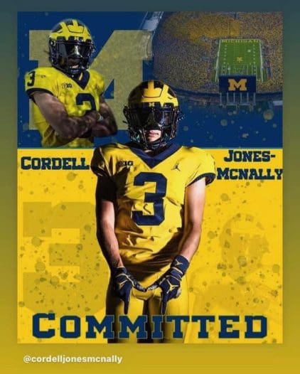 MHS Senior Kicker/Punter Cordell Jones-McNally is going with Maize and Blue. A top prospect for D1 football, Cordell says its The Big House for him. MHS Senior kicker – and more! – Cordell Jones-McNally announced recently his commitment … [Read more...] about Jones-McNally says he’s 100% Committed to The Big House