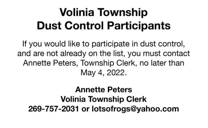 Trustee Bitely called the regular meeting to order at 7:00 p.m. Members present – Bitely, Meade, Packer and Nesbitt. Also present – Attorney Schuitmaker and twelve guests. Motion by Packer with support by Meade to approve the … [Read more...] about Porter Township Van Buren County Regular Meeting March 9, 2022