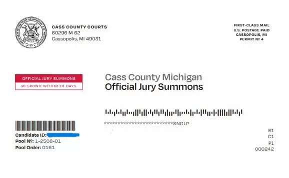 CASS COUNTY, Mich. — Beginning in August, Cass County residents summoned for jury duty will notice a change in the process, according to Clerk/Register of Deeds Monica McMichael. The Clerk/Register’s Office has upgraded to a … [Read more...] about Cass County Clerk/Register’s Office rolling out new Jury Summons system