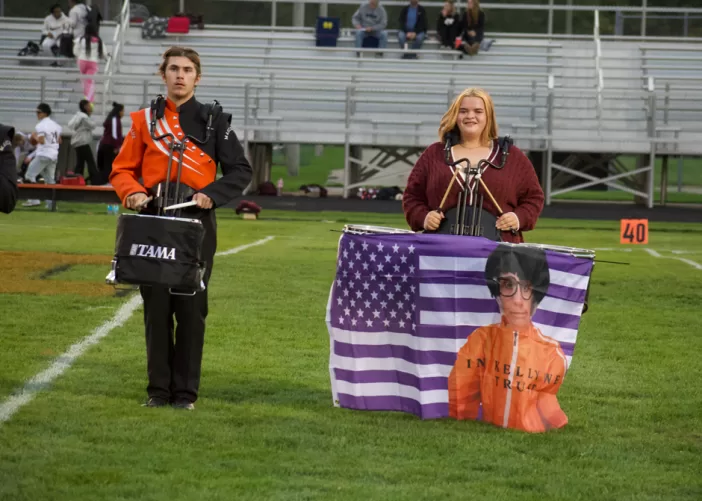 Percussionist Cat Shelton, right, joined the other senior band members in paying homage to Band Director Katy Essex during the students’ last marching band performance, Friday, October 17. Also pictured is Julian Ahonen. -News … [Read more...] about Band Notes for the week of October 20, 2025