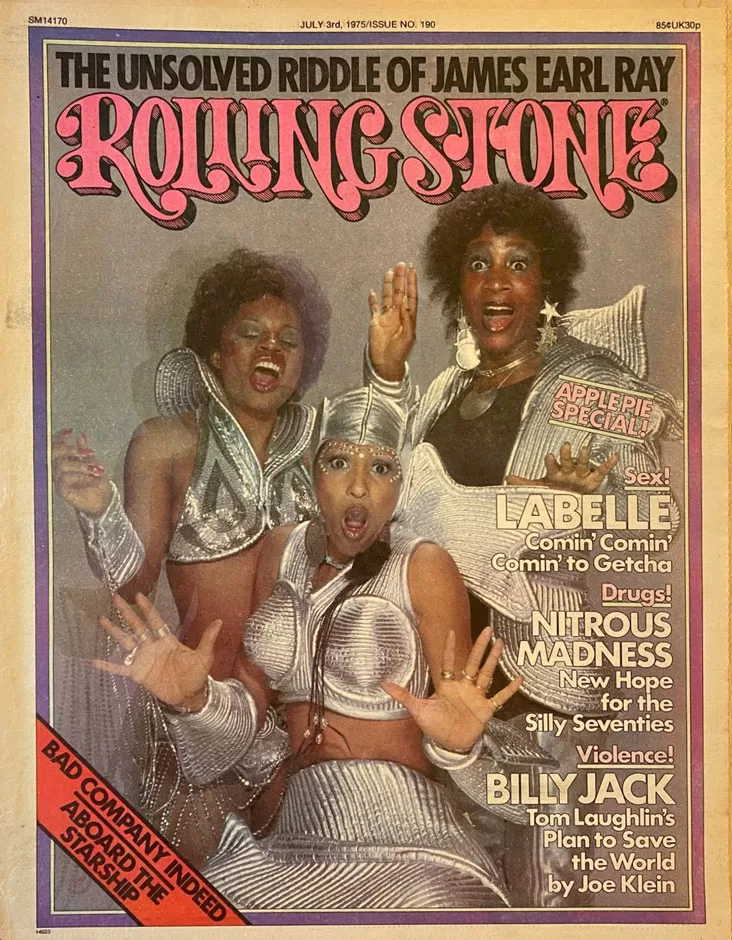 1975: Labelle is the first Black vocal group to appear on the cover of Rolling Stone. Donning sexy space-age costumes, the “Lady Marmalade” hitmakers are given the tagline “Comin’ Comin’ Comin’ To Getcha.”
