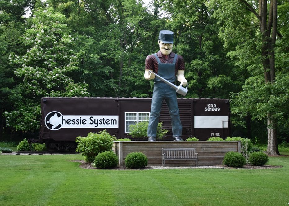 The five boxcars, purchased in 1990 from Grand Trunk, serve as housing for the many guests the Foundation hosts each year. Each has been retrofitted with a bathroom, utility room, sitting room, and two bedrooms. They sit in a semi-circle in a peaceful wooded area with a large figure of Casey Jones watching over the parklike setting.