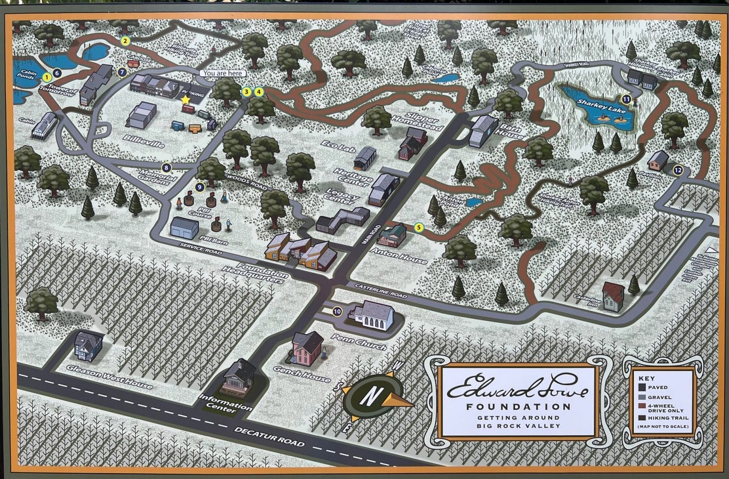 As the sun began to drift slowly behind the treetops, the Society’s evening at Big Rock Valley came to a close. It was time to begin the journey home past the Memorial Gardens, Foundation Headquarters, the old Penn Church, Gench House and Allegheny School before reaching Decatur Road with a new appreciation of Entrepreneurism, Environmentalism, and the legacy of Ed and Darlene Lowe.