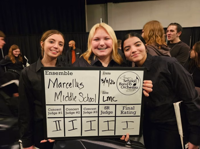 Director of Bands Katy Essex called it a “great day,” Wednesday, March 11. The Marcellus Middle School Band received a First Division Rating during the District VI MSBOA Festival at Lake Michigan College. Displaying the final rating is, … [Read more...] about Band Notes: Marcellus Middle School Band receives First Division Rating at Festival