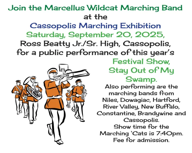 The Marcellus Band Boosters congratulateHilary Sziede and John Powersthe winners of the Fall 2025 Terrill’s Market Meat Bundle Raffle.Thank you to everyone who participated in support of the Marcellus Community Schools Music … [Read more...] about Band Notes for the week of September 8, 2025