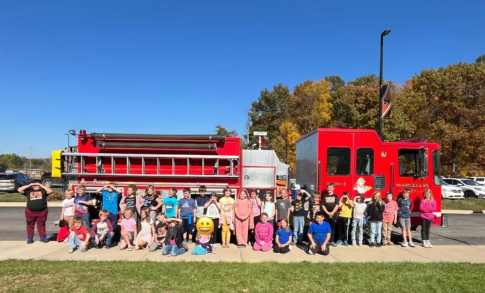 The Marcellus Fire Department visited with the kindergarten through 4th grade classes at the Elementary School, Monday, October 21. Pictured here is the second grade class. The Marcellus Fire Department visited each of the K-4 … [Read more...] about Fire Department visits Elementary School