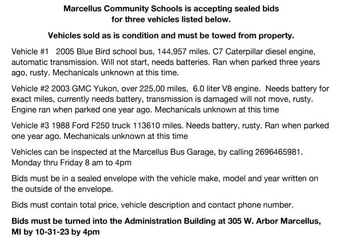 Marcellus Community Schools Selling Vehicles