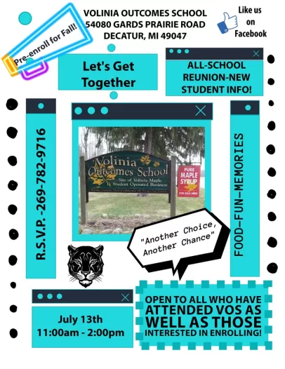 Volinia Outcomes School is inviting past, present, and future students to an All-School Reunion, Sunday, July 13, 11:00am – 2:00pm. According to Dawn Gearing, the event is open to everyone who has attended the school … [Read more...] about Volinia Outcomes School to hold all-school reunion July 13