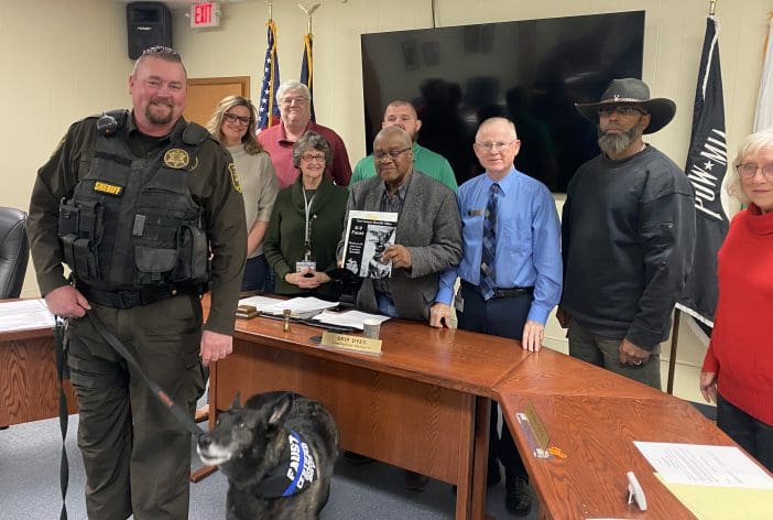 Pictured from left are Cass County Sheriff’s Deputy Dave Nevins and K9 Faust, Clerk/Register Monica McMichael, commissioners Robert Benjamin, Roseann Marchetti and Ryan Laylin, Chair Skip Dyes, Vice Chair Mike Grice, and commissioners … [Read more...] about Deputy K-9 Faust Retires