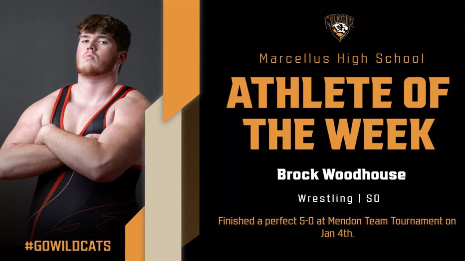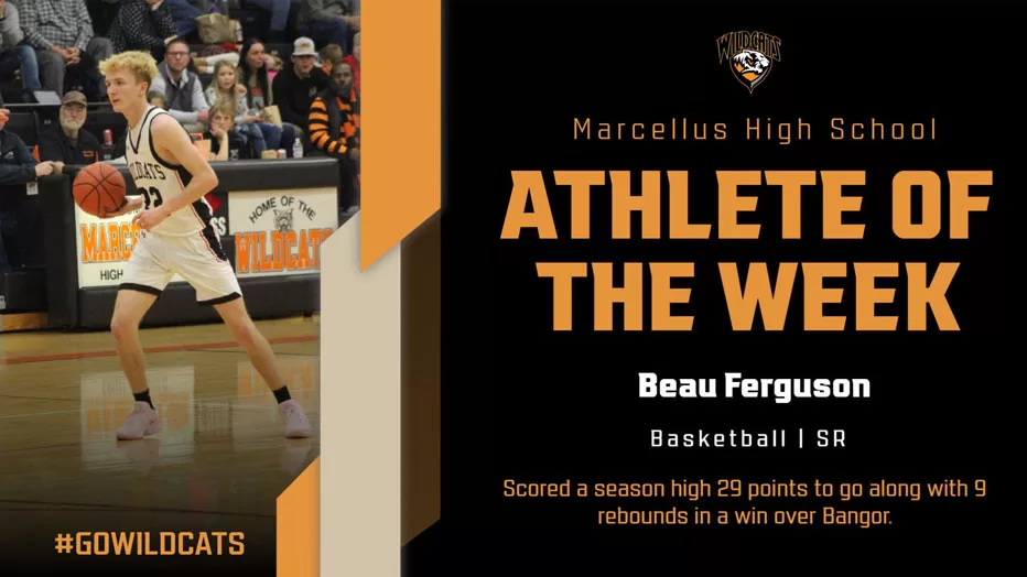 Congratulations to the MHS Athletes of the Week January 14, 2025 By Marcellus News Leave a Comment Senior basketball player Beau FergusonSocred a season high 29 points plus 9 rebounds in the ‘Cats win over Bangor Sophomore Wrestler Brock WoodhouseFinished a perfect 5-0 at the Mendon Team Tournament January 4