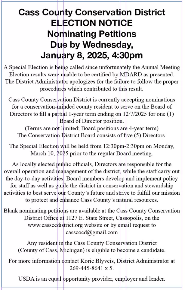 Election Notice from the Cass County Conservation District December 17, 2024 By Marcellus News Leave a Comment