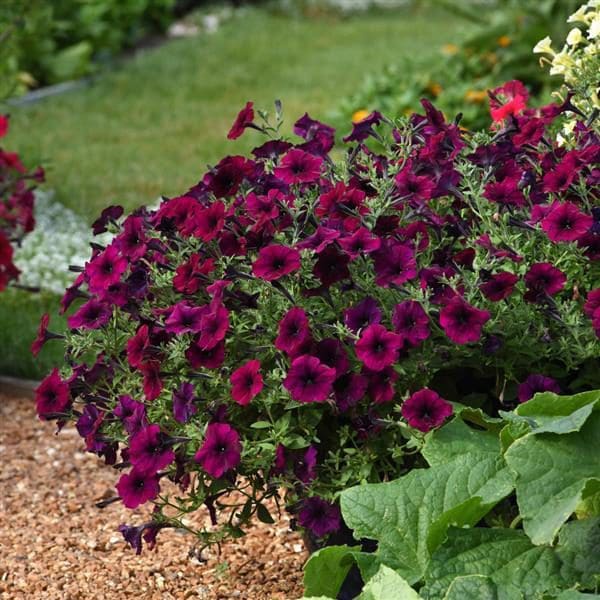 To add instant color to sunny spots, try all-season blooming Easy Wave® Burgundy Velour Petunias either solo or in mixed planters, baskets, gardens and window boxes.