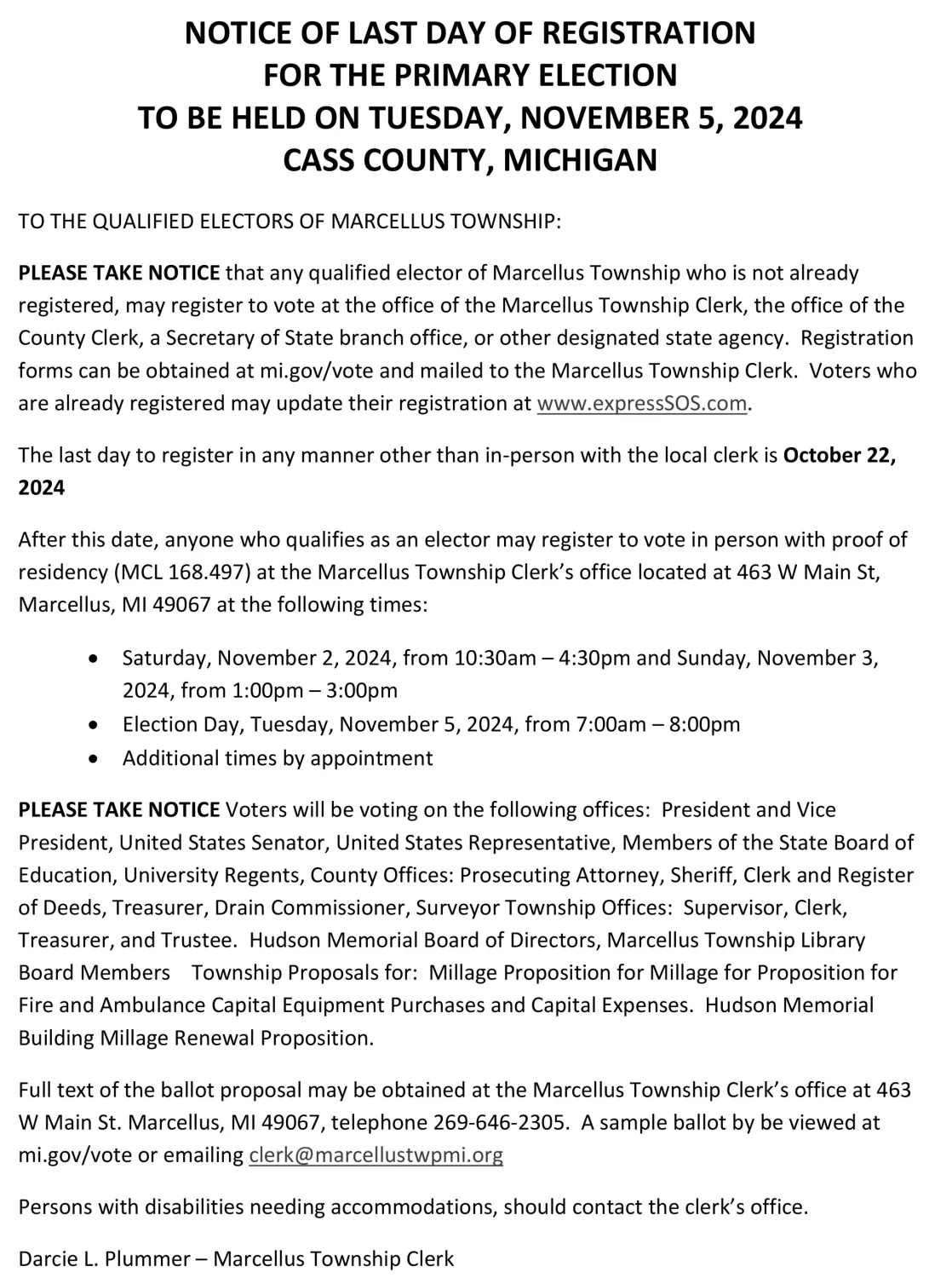 P.O. Box 218, Marcellus, MI 49067-0218.