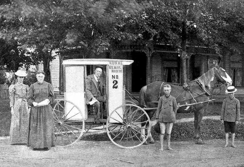 Rural free mail delivery began in the United states in 1896 as a way to get mail directly to farmers. The picture above is from 1899.