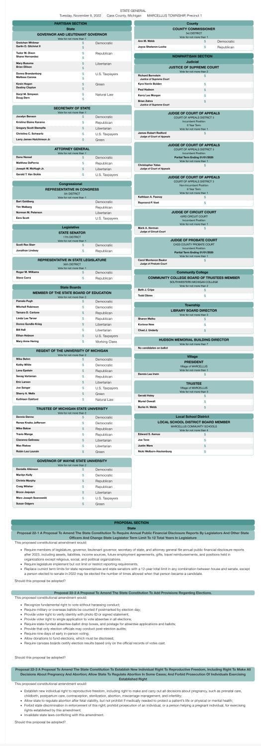 A sample ballot for Marcellus Township is below.
