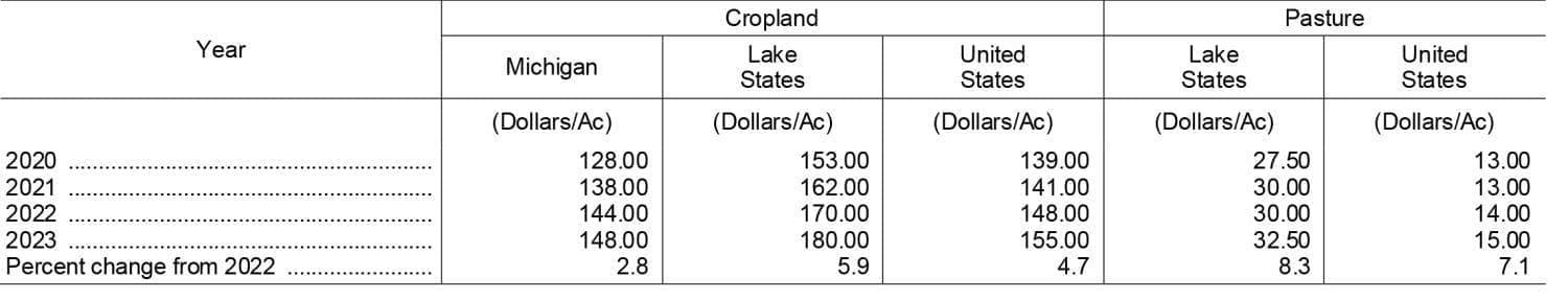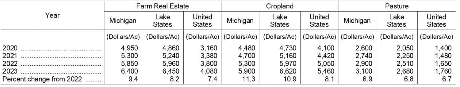 Land Values – Michigan, Lake States, United States: 2020 – 2023