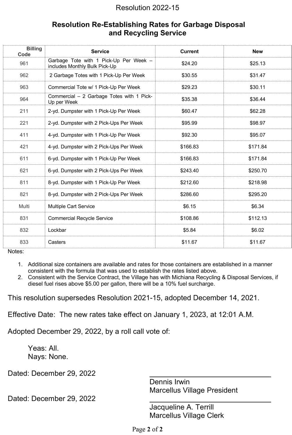 Village of Marcellus Water, Sewer, Garbage Resolutions January 3, 2023 By Marcellus News Leave a Comment